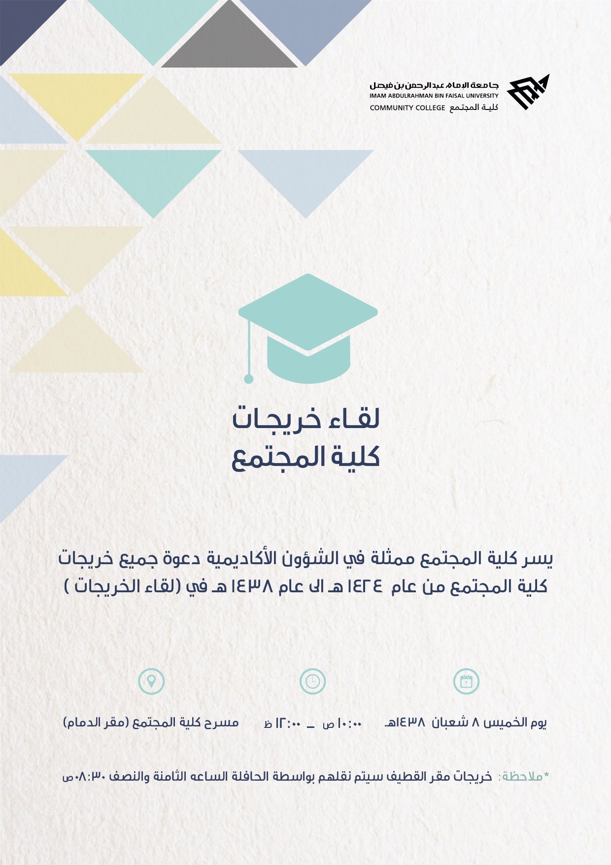 جـ ـامـ ـعـ ـةالإمـ ـام عــبــدالرحـمن بن فيصل On Twitter يقام اليوم على مسرح كلية المجتمع بـ الدمام لقاء خريجات كلية المجتمع من عام ١٤٢٤ هـ الى عام ١٤٣٨هـ