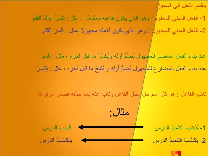 الفعل المبني للمعلوم والفعل المبني للمجهول ونائب الفاعل Ppt تنزيل